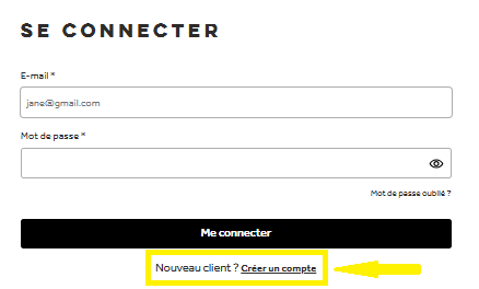 2- Dans l'encart se connecter, cliquez sur « Nouveau client ? Créer un compte »