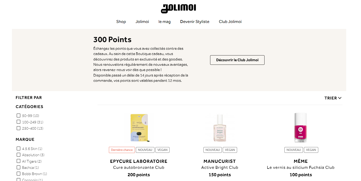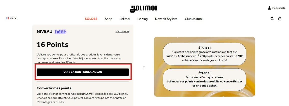 Les points cadeaux du Club Jolimoi peuvent être utilisés de deux façons, en fonction de votre statut (Quels sont les statuts et niveaux du Club Jolimoi ?) :