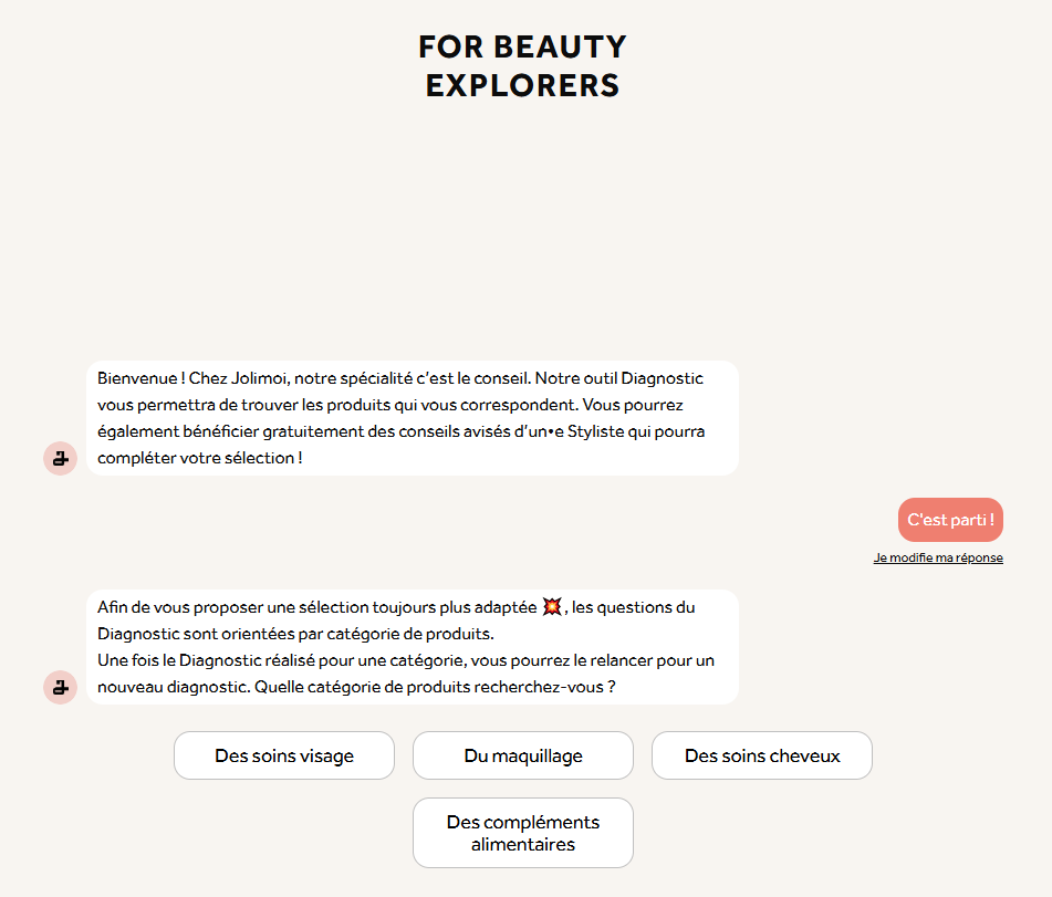 Le diagnostic est une étape essentielle pour créer votre compte client chez Jolimoi. Il permet de définir votre profil beauté et d’accéder à une sélection personnalisée de produits qui correspondent à vos besoins.